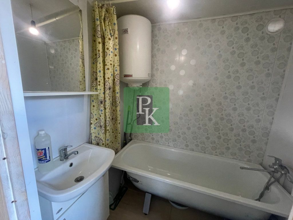 Дом 15,2 м² на участке 4 сотки, одноэтажный. Расположен в г. Севастополь, Балаклавский район, СТ Строитель”. Коммуникации: электричество, водоснабжение, отопление, канализация.