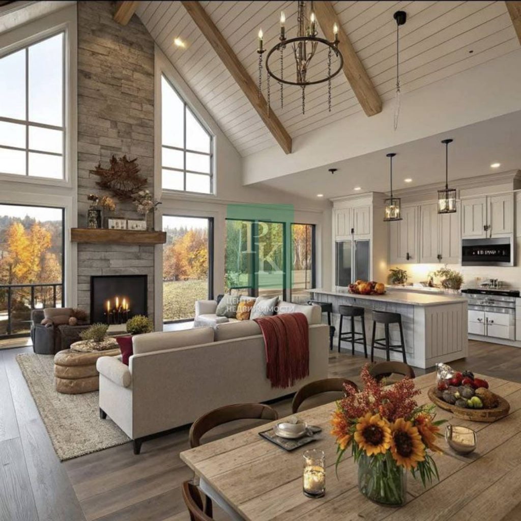 Яркой изюминкой этого дома является панорамное остекление, окна в пол и использование технологии “второй свет”.