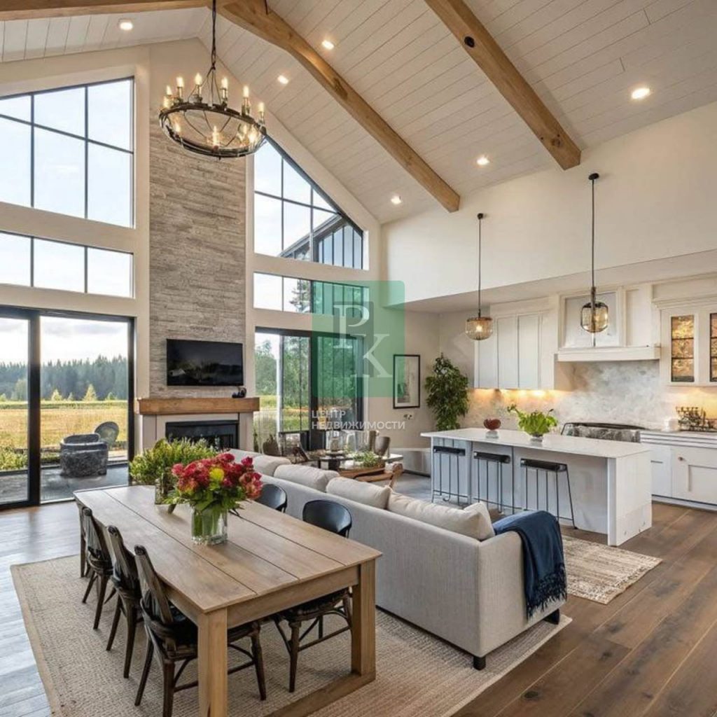 Высота потолка в гостиной достигает 6м, здесь много света и воздуха. Гостиная станет местом притяжения в вашем доме для всех членов семьи и для ваших гостей. Здесь можно реализовать самые оригинальные и стильные задумки в интерьере.