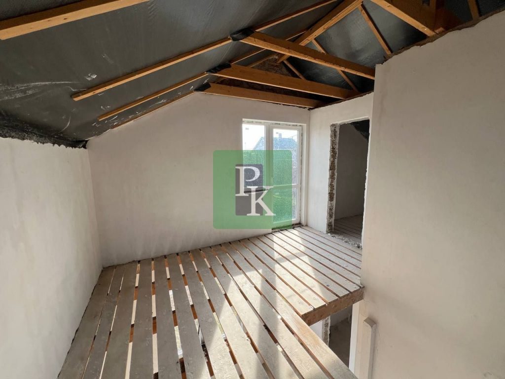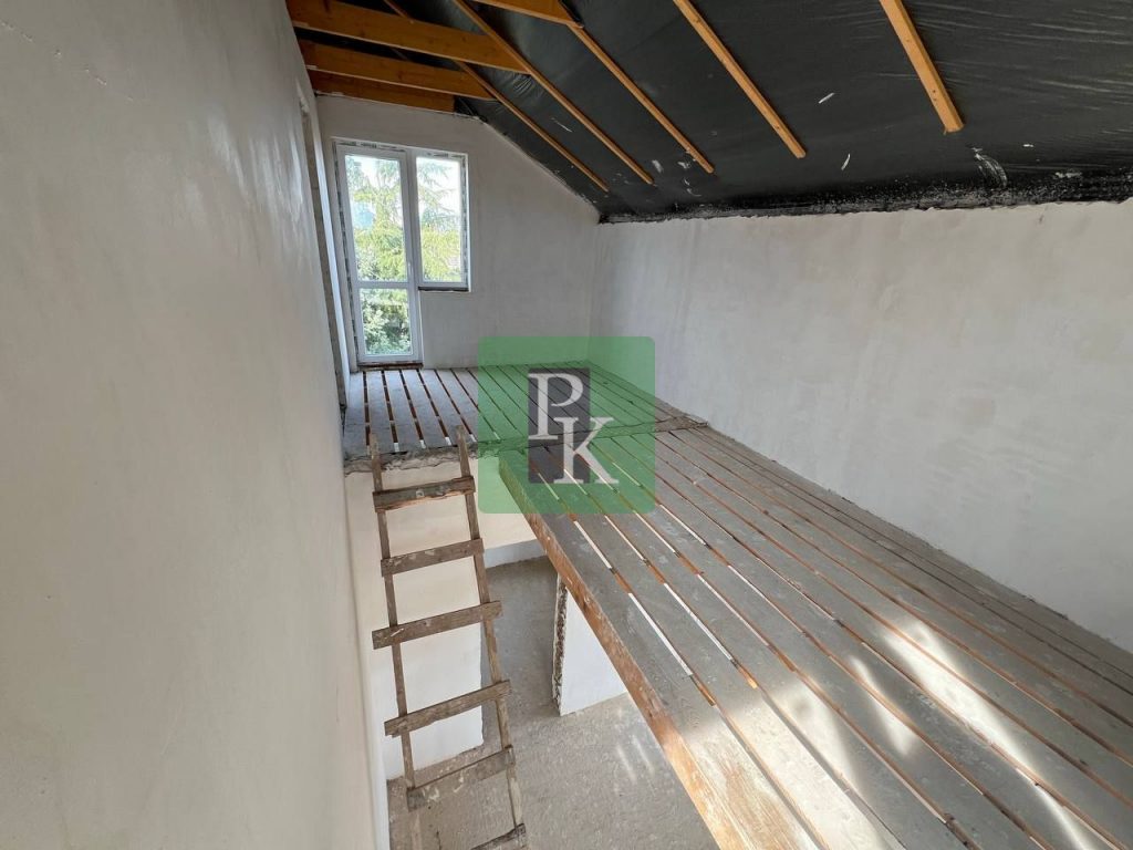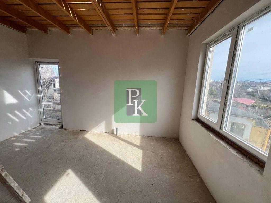 Выходы запланированы под террасы. Дом очень светлый. Построен профессиональной бригадой начиная с фундамента. Есть разводка воды и канализации, установлен септик, подведено электричество.