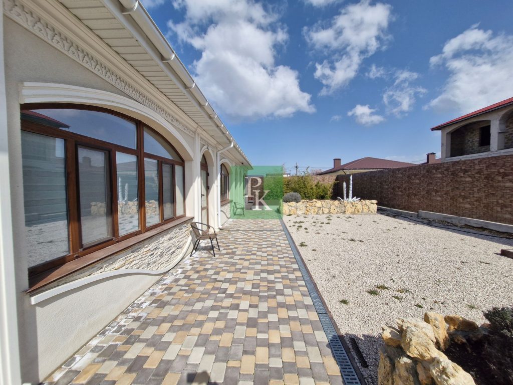 Дом 133 м² на участке 4 сотки, одноэтажный. Расположен в г. Севастополь, Балаклавский район, СНТ “Успех”. Коммуникации: электричество 15 кВт, канализация – септик.