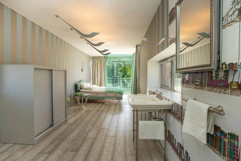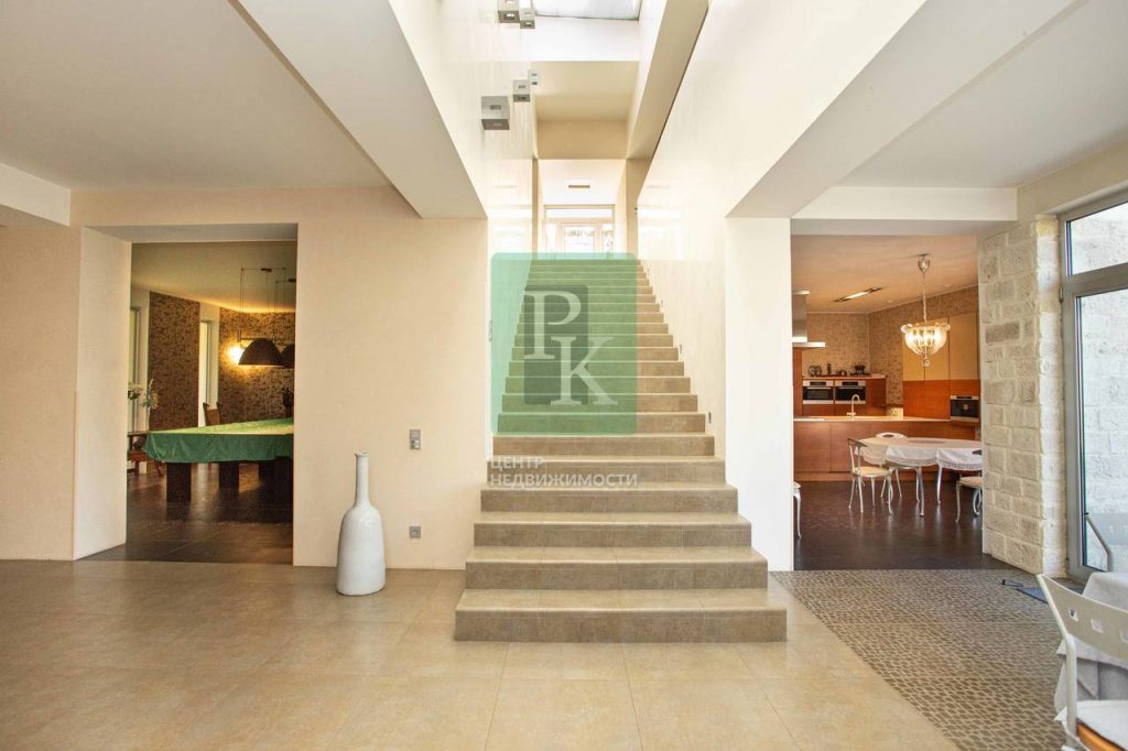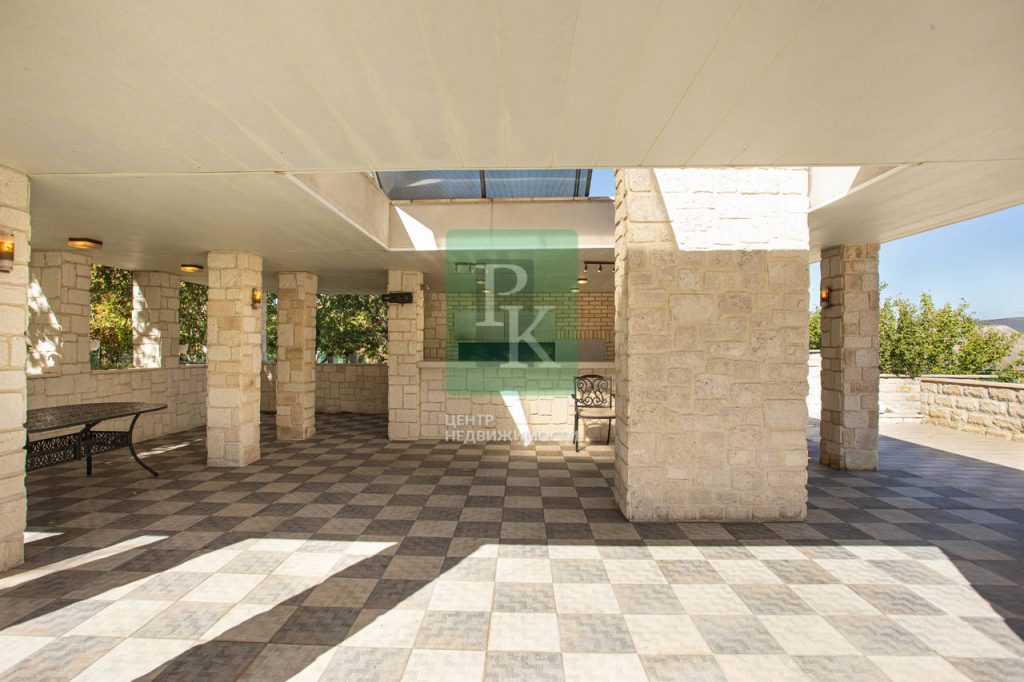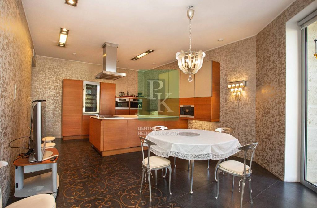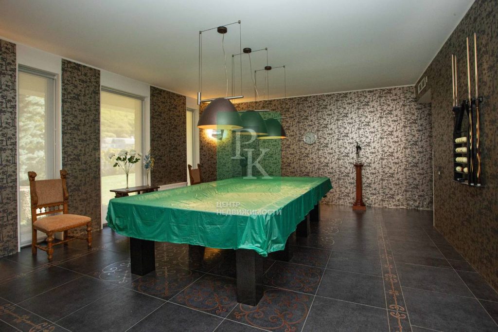 В доме: уютная гостиная с камином, кухня-столовая, бильярдная, кабинет с панорамным видом, 6 спален, 7 сан узлов, постирочная, гараж для авто.