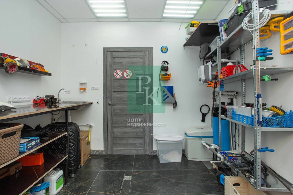 - подсобное помещение с системой водоочистки и водозабора, мастерской, кондиционером и тёплым полом;